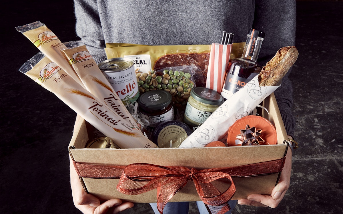 These we think are totally unique to the Christmas hamper market and very close to our heart as a sustainable catering company. We have cherry picked these suppliers, plus we have designed the menus including items that we transform from 'waste'. We have items from Toast Ale, Rubies in the Ruble, Secret SmokeHouse, and then homemade items like Preserved lemon dip, scrap sweet potato pacers with homemade lime pickle, windfall apple kraut etc. This is £70 for two people.