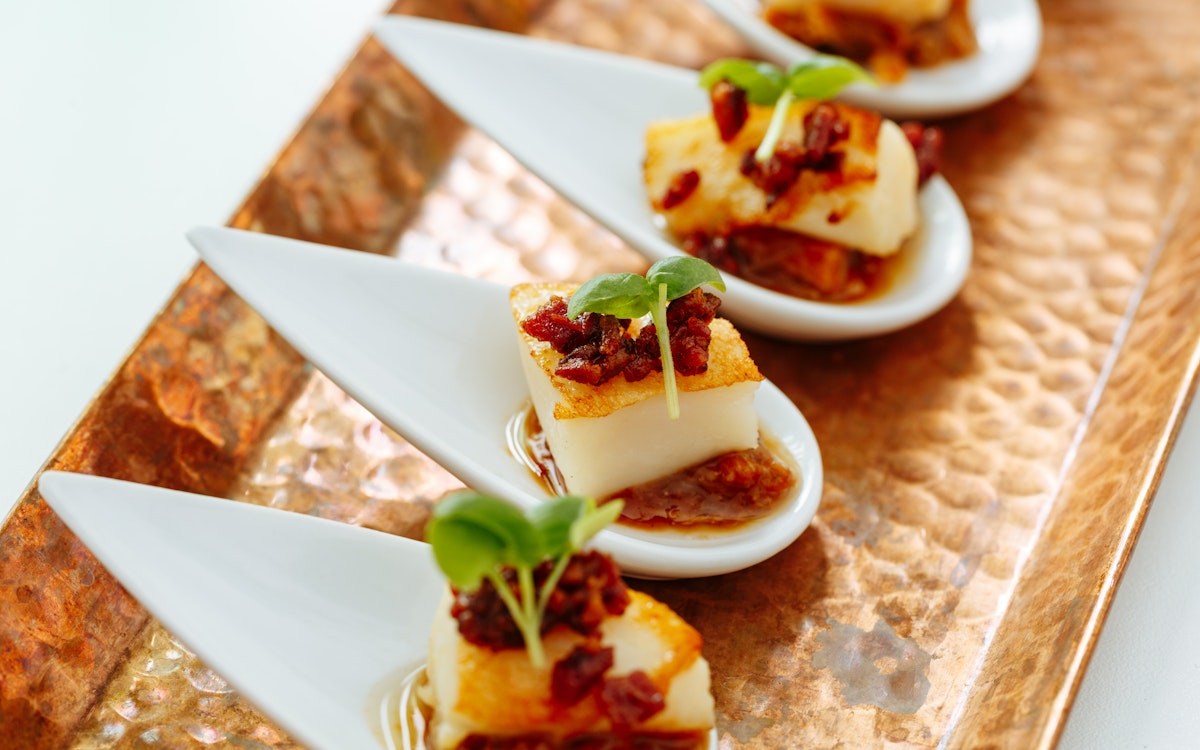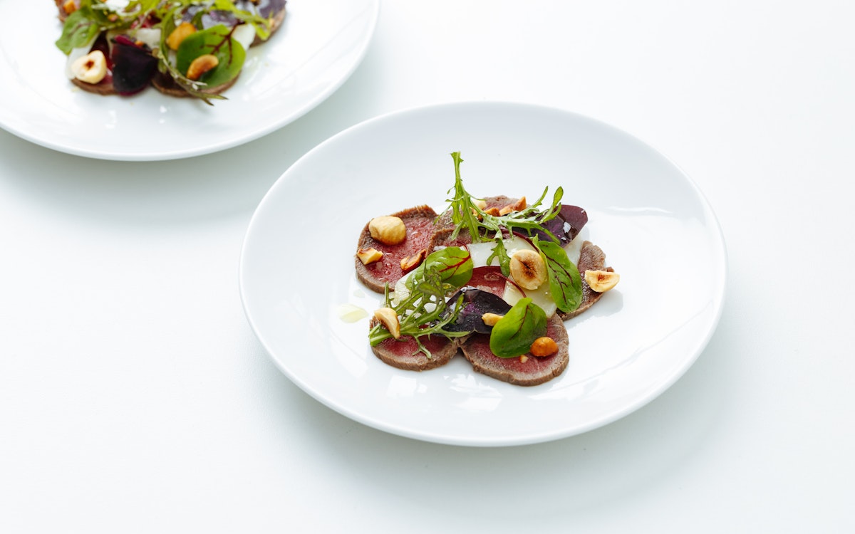 We are on a mission to be the first catering company to become single-use plastic-free by 2021 and work hard to ensure our whole operation is zero food waste. All waste from herb and veg trimmings go into making our Zero-Waste herb oil which can be seen across our menus. Our menus are seasonal, and we have reduced the meat offering and focused a lot on the development of plant-based dishes.