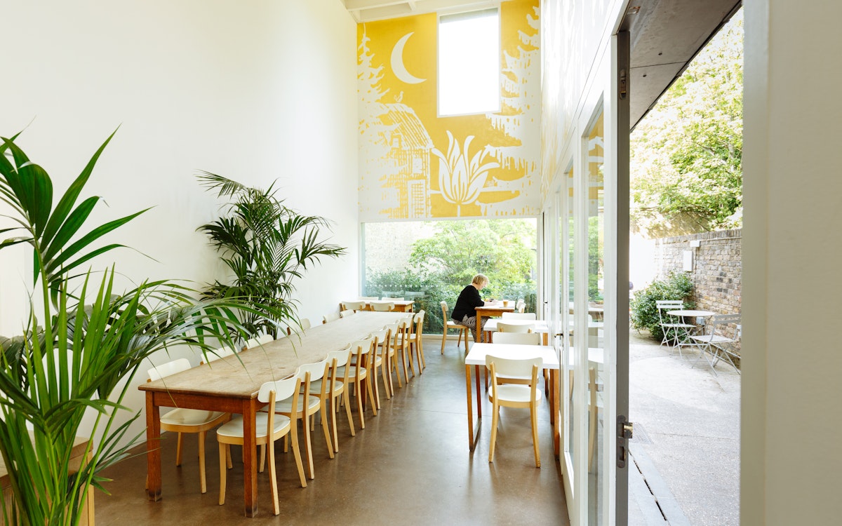 Crane's Kitchen, in South London Gallery, is a contemporary space, with a double height ceiling and walls of windows looking onto our garden patio. There is a SONOS system and bar available.