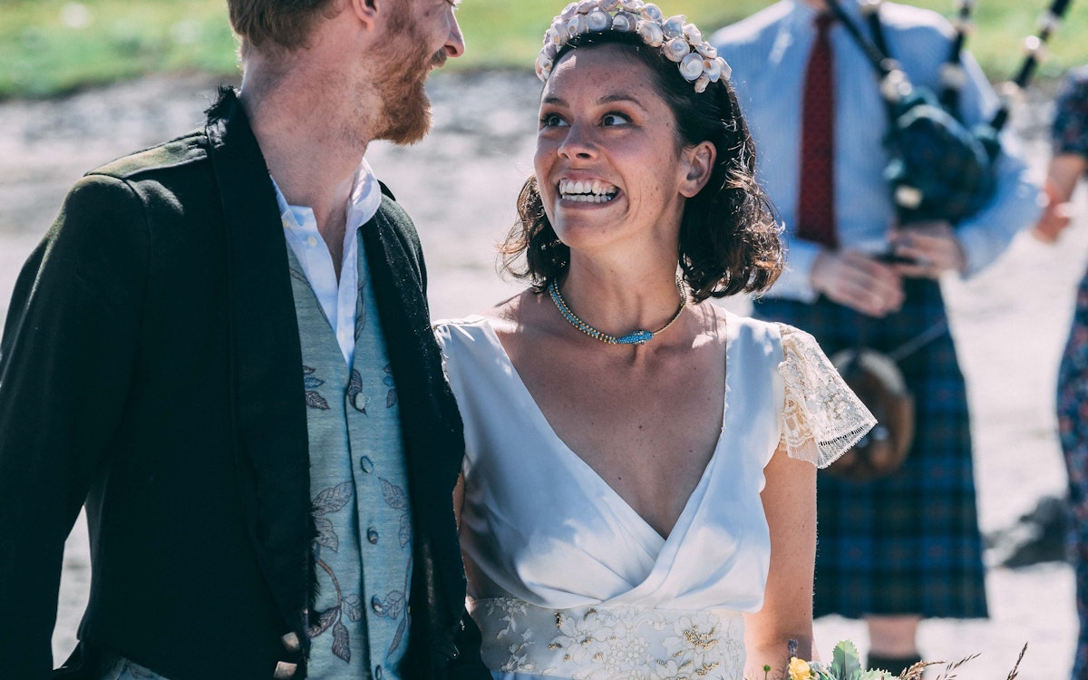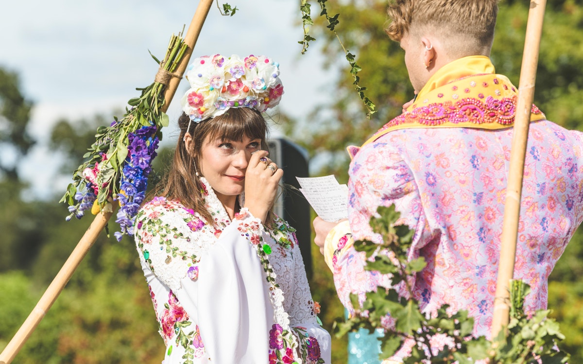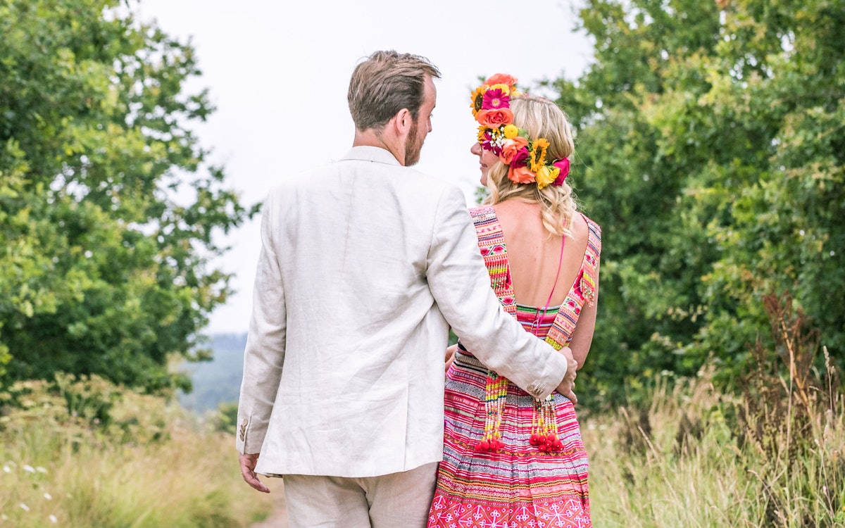 The short version... We met when Florence joined the Noisily Festival team in 2016 to produce the healing area. It was love at first sight, we shared a kiss and 6 weeks later Charles began designing a ring. Cut to present day and we are married with our first child in our arms.