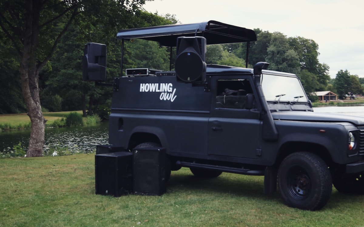 We have taken an adventurous approach to event sound by converting a Landcover Defender 110 and kitting It out with Pioneer decks and a seriously punchy sound system. We can dress it to suit the event and set it up either for a DJ or live sound with our 8 track sound desk and 5x SM58 microphones. Your imagination is the only limit when it comes to the Owl, re-brand, co-brand, covered in greenery, full light show, DJ with sax man, you name it, we can do it and the best part is that no location is beyond reach with our generator able to take you truly off grid for up to 10 hours.