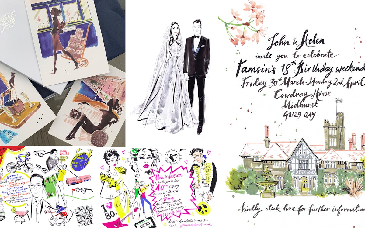 I draw guest portraits at live events, from corporate to private parties. Working either by hand in painterly black ink or digitally on my iPad Pro, each take between 7 and 15 minutes to complete. The Bluetooth and Wireless printer enables me to print in seconds for guests to receive a beautiful quality print, in a folder, on the night. All sizes are available. Regular clients are Louis Vuitton, Armani and Ralph Lauren who invite me to draw at special in-store events. I have worked worldwide in LA at Emmy's parties, in The Middle East for Van Cleef & Arpels, Cartier in Paris and Bvlgari in St Moritz as well as extensive work in Paris and Berlin. I relish bringing out peoples' best lines, giving them a stylised 'fashion portrait' which will give the best version of themselves. I aim to flatter and leave guests with that 'feel good factor'. Most events are 3-4 hours, where I can draw approx…15-20 guests Please enquire for a ‘partner act’ who can double up with me, producing a similar style, where we can draw up to 60 guests. I also take commissions for party invitations, menus, table place cards & table plans. I do a looser version of calligraphy using my oriental brushes or brush pens, also available in gold and silver ink.