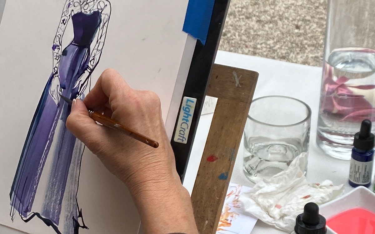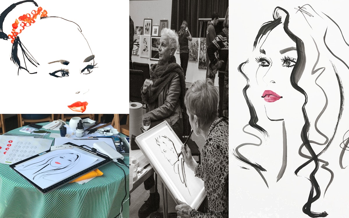 I have over 30 years experience as a fashion illustrator. The best fashion portraits are done using few lines so the more confident the brush work, the better the finished result! I look at my guest and see what is beautiful about them- leaving out double chins and wrinkles! I don't lie about how people look but I choose to omit some features or soften them with more gentle, sensitive lines where necessary.