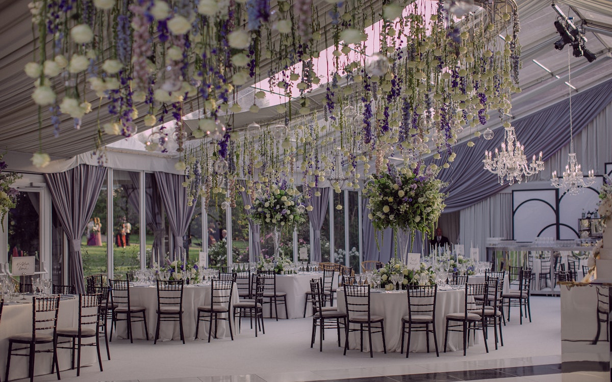 My first ever floral ceiling which was over 30 square meters! We used over 500 delphiniums and completely transformed the marquee in to another world - there was nothing better than seeing our clients reaction.