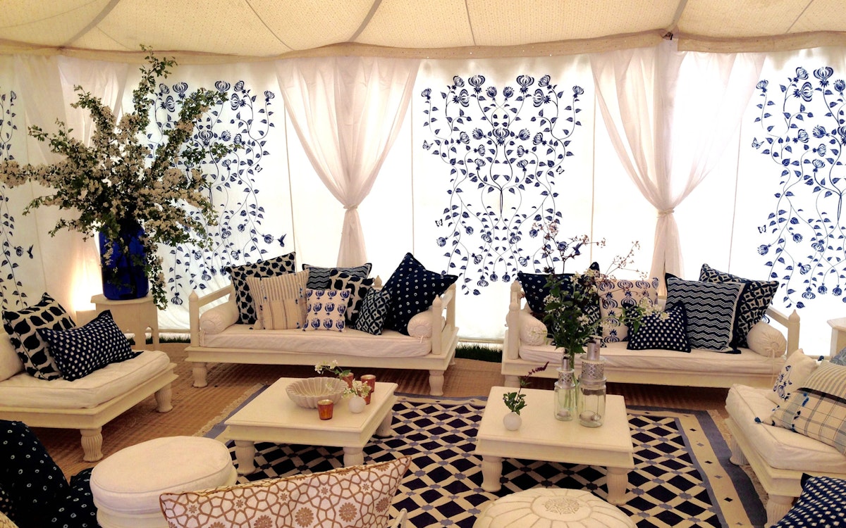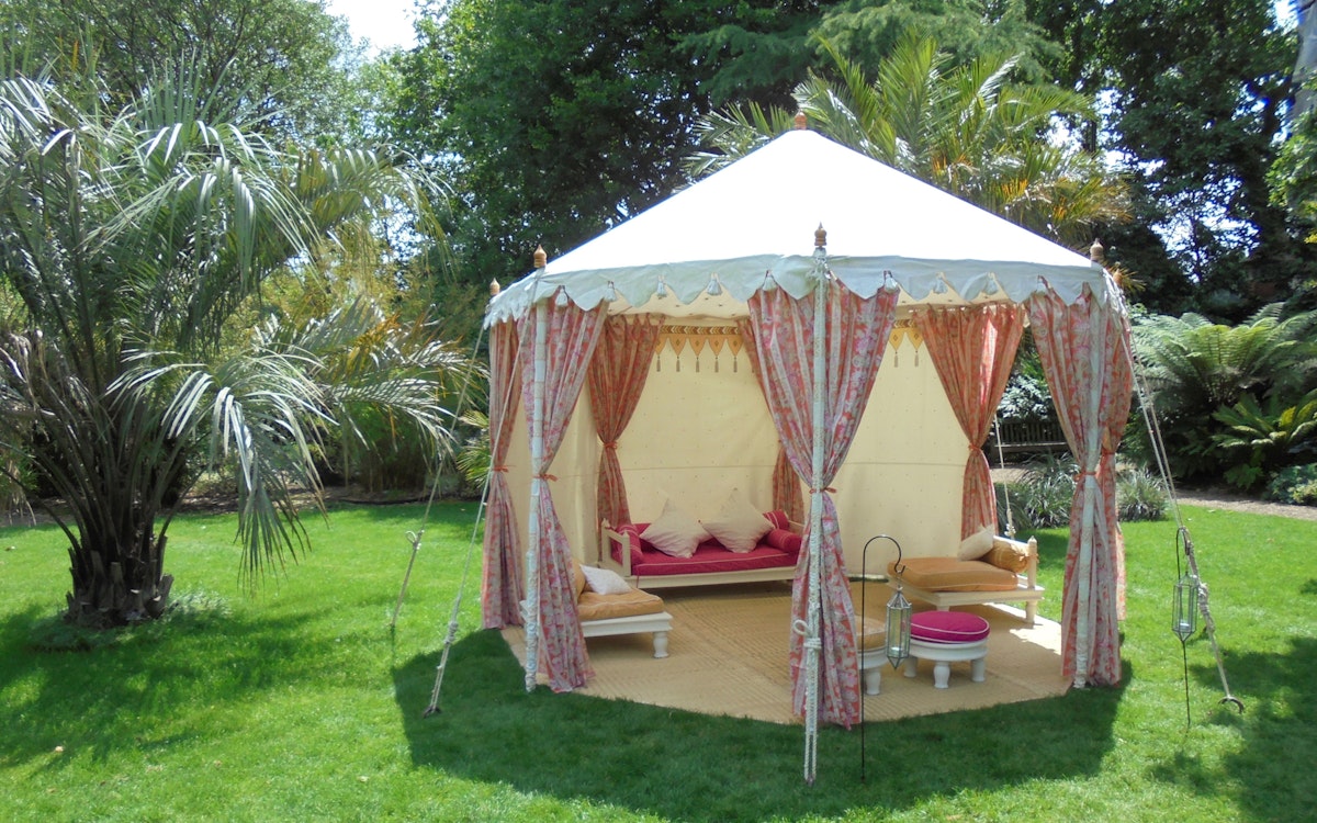 We undoubtedly have the largest selection of beautiful linings available and also perhaps the largest range of tent sizes. This, together with our substantial range of furniture, lighting and accessories, allows us to offer a myriad of styling choices: from plain chic simplicity to all out Bollywood and everything else in between.