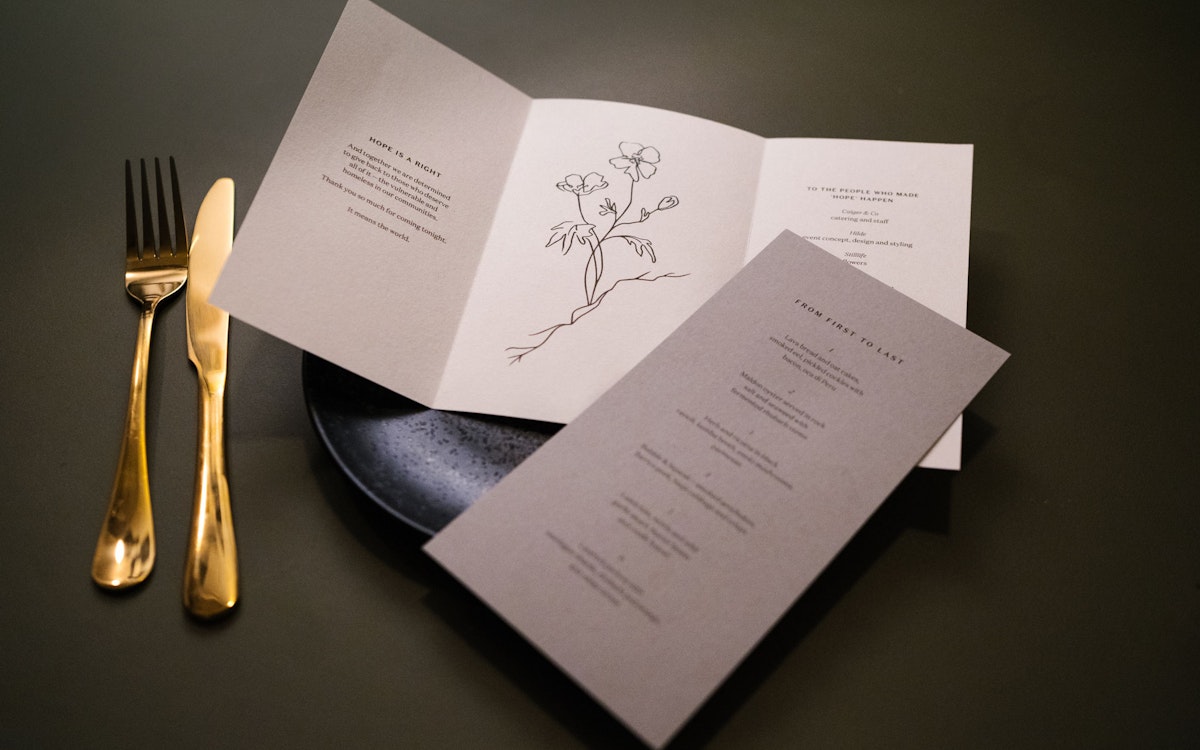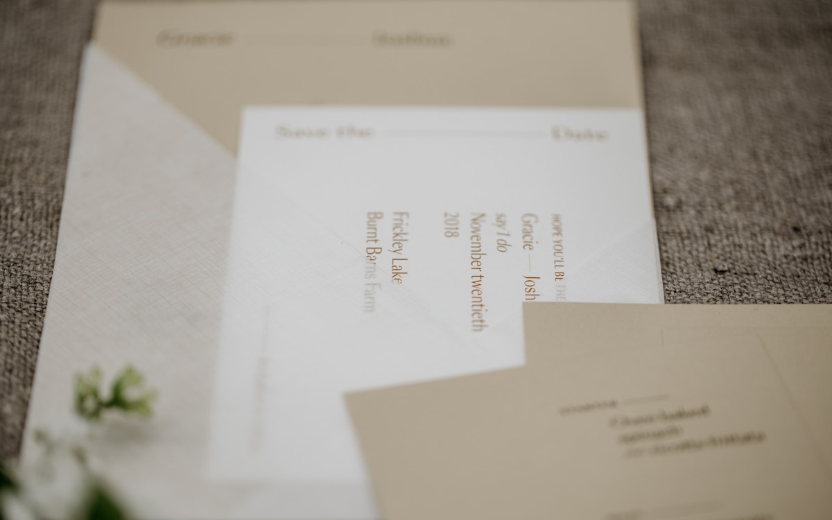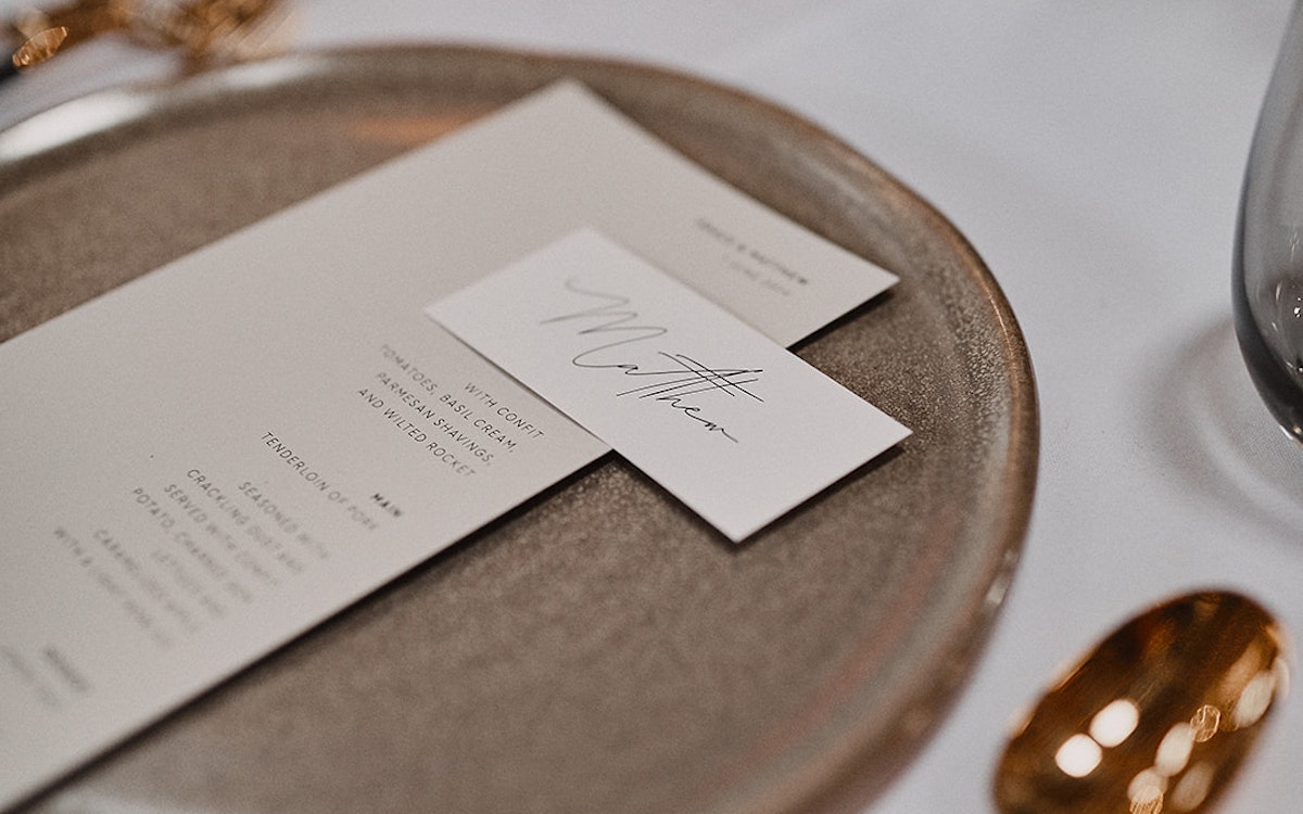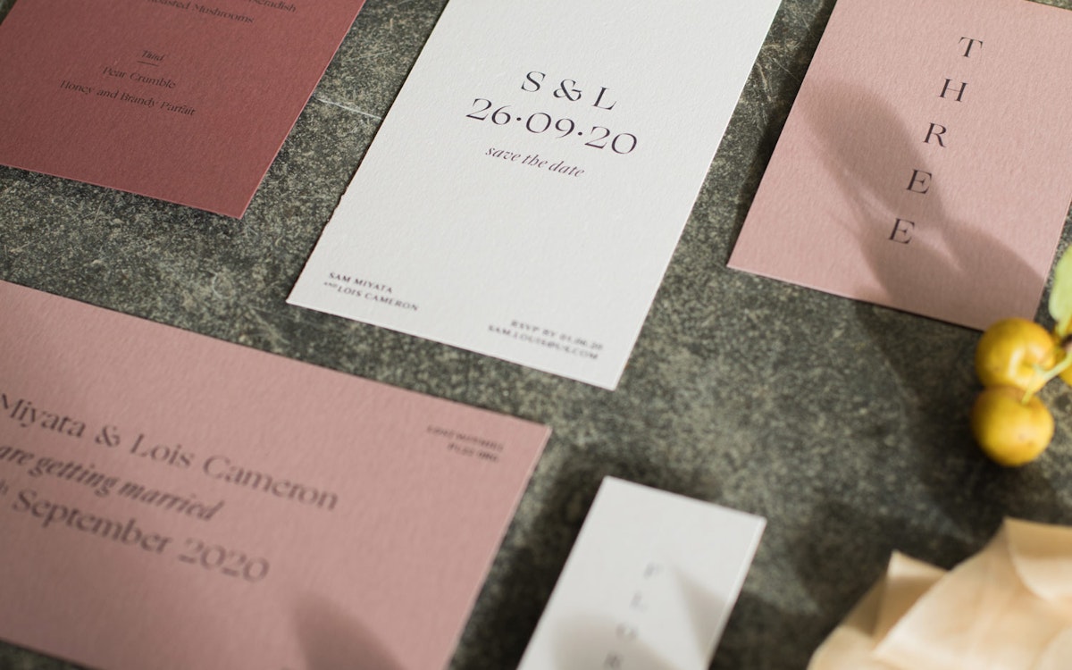 We are here to help create all your stationery needs with a design-forward aesthetic. Designed in our small studio in the heart of London, we work with event planners and private clients to marry our contemporary typographic style with your vision. Our semi-custom designs are available for pre-wedding, on the day and post-wedding paper needs or we offer a fully bespoke service if you have a specific direction for an event. We advise you on every element of the process to best fit your taste, and work closely with our printers to ensure the best printing finishes for your project.