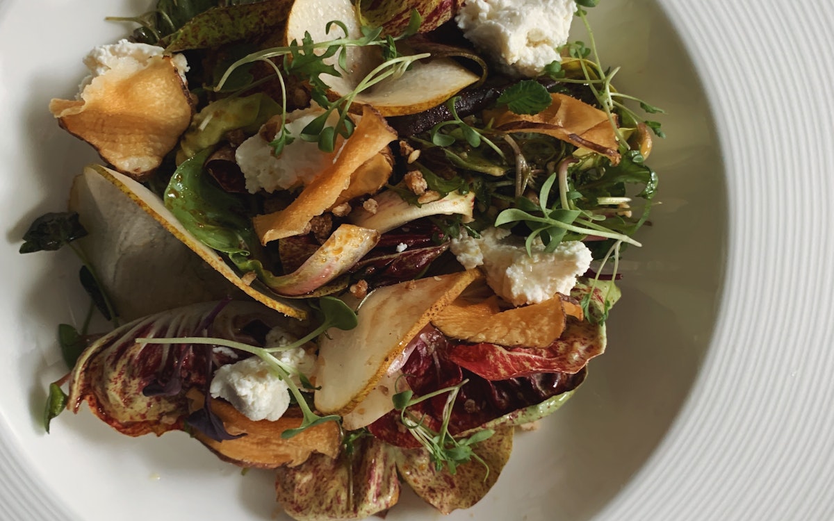 SEASONAL CANAPÉS ON THE TABLE Garden crudite, confit garlic oil, breads and fire baked camembert STARTER Isle of Wight scallops with gremolata and chorizo MAIN Cotswolds lamb with wild garlic salsa verde Tomato salad with capers and anchovies Crispy potatoes with wild garlic salt Grilled baby gem with black garlic dressing and croutons DESSERT Basque cheesecake with poached rhubarb TEA, COFFEE & PETIT FOUR