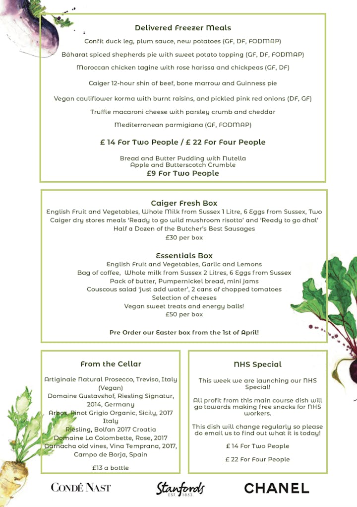 By Alix Caiger - Caiger & CoAlix with her team of trained chefs, have now launched a contactless delivery service of freshly prepared, nutritious meals across London and beyond. As well as providing boxes of fresh fruit, vegetables, milk and meat, and with recipe cards included.