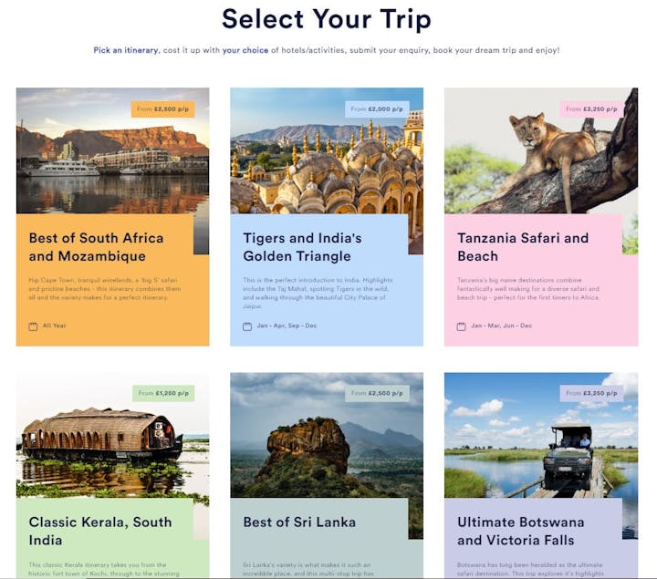 We want nemo to answer questions before they’re asked, so the aim is for the website to do the initial ‘consulting’ and take the sales out of the user journey. It’s a fine line to tread, as we also want to get our expertise across and guide people in the right direction, so our travel nerds are always on hand to answer questions or hop on a call. We are constantly working to make the experience more digital but are well aware that personal consulting is sometimes necessary, if just for reassurance before committing to the trip.