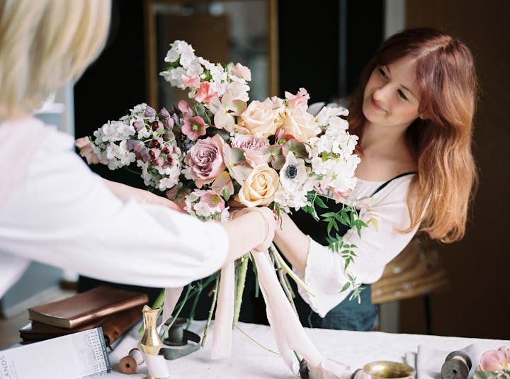 Check out Tattie Rose Flowers, Studio Sorores and the following event florists who use 'foam-free' floral arrangements in an increasing effort to make events more sustainable and eco-friendly: Lucy Vail Floristry, Pollen Nation, and Lavender Green Flowers.