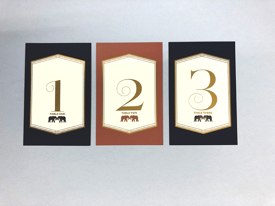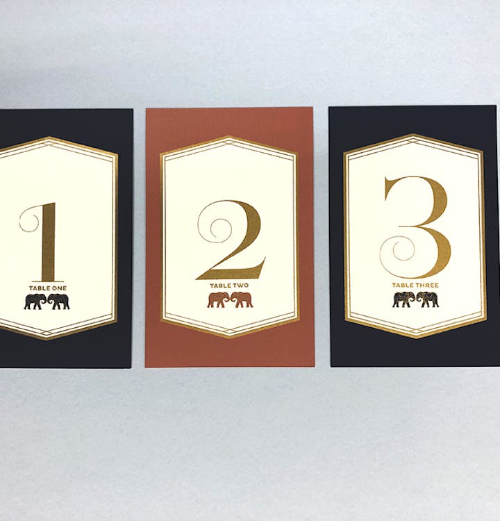 To prevent complete and utter chaos, having clear table names and numbers are essential. We adore Ananya | Wedding & Event Stationery 's classy and elegant elephant table number stationery, which would add simplistic charm to your wedding day.
